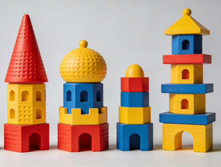 Start with simple blocks and build your own tower.